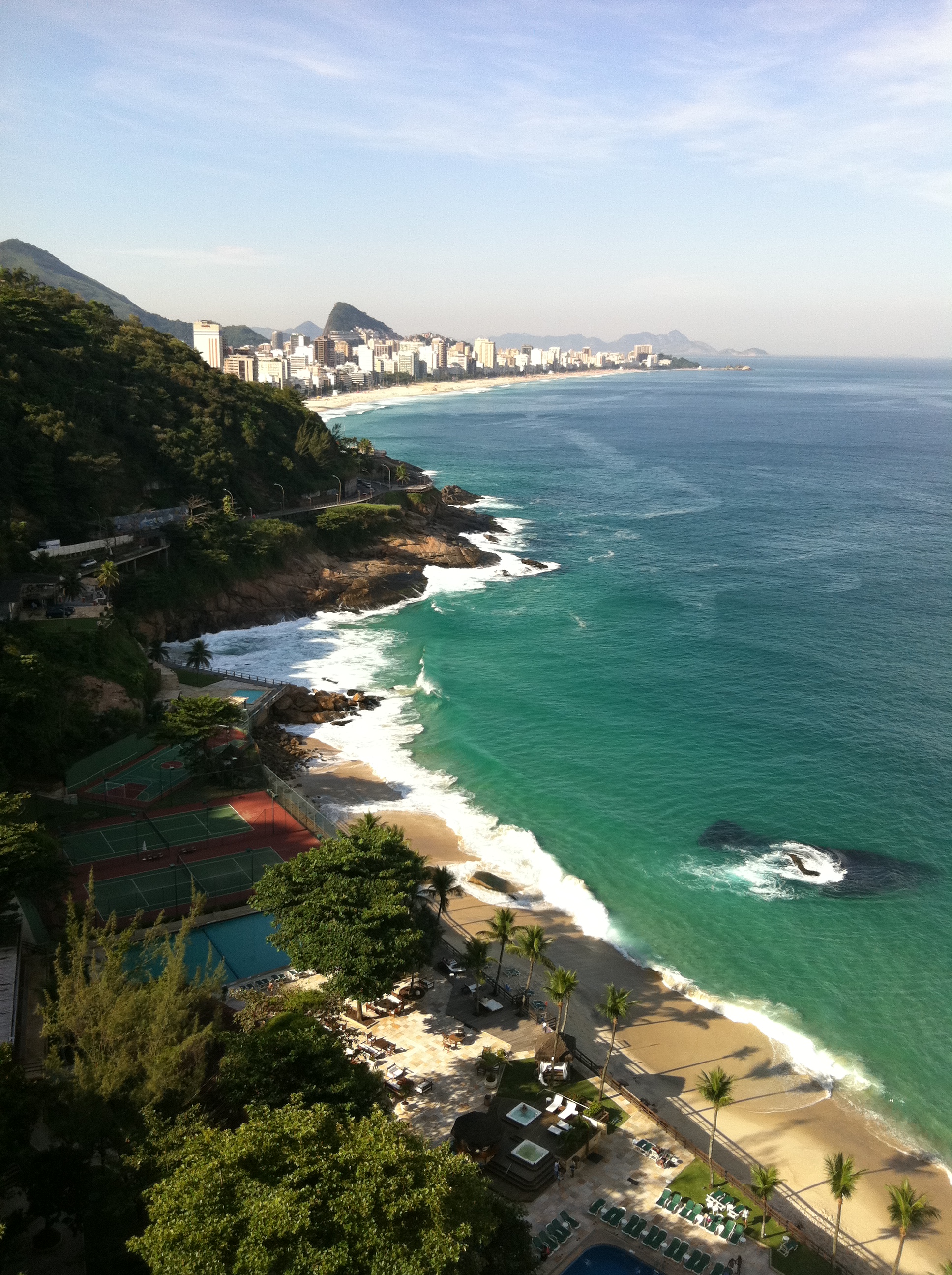 Or so I thought. Just two short weeks ago, staying in a downtown Dallas hotel that glowed rainbow colors after sundown was enough to get my rocks off. But five minutes at the Rio de Janeiro Sheraton, and the bar has been raised infinitely higher. I apologize in advance for being super obnoxious here, but check out my view today: