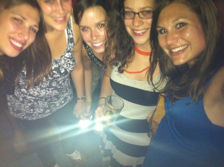 Last week, I was out until just before sunup with these heartbreakers, who – judging by the blinding reflection in this photo – may also be Planeteers. (Rachel is totally heart.)