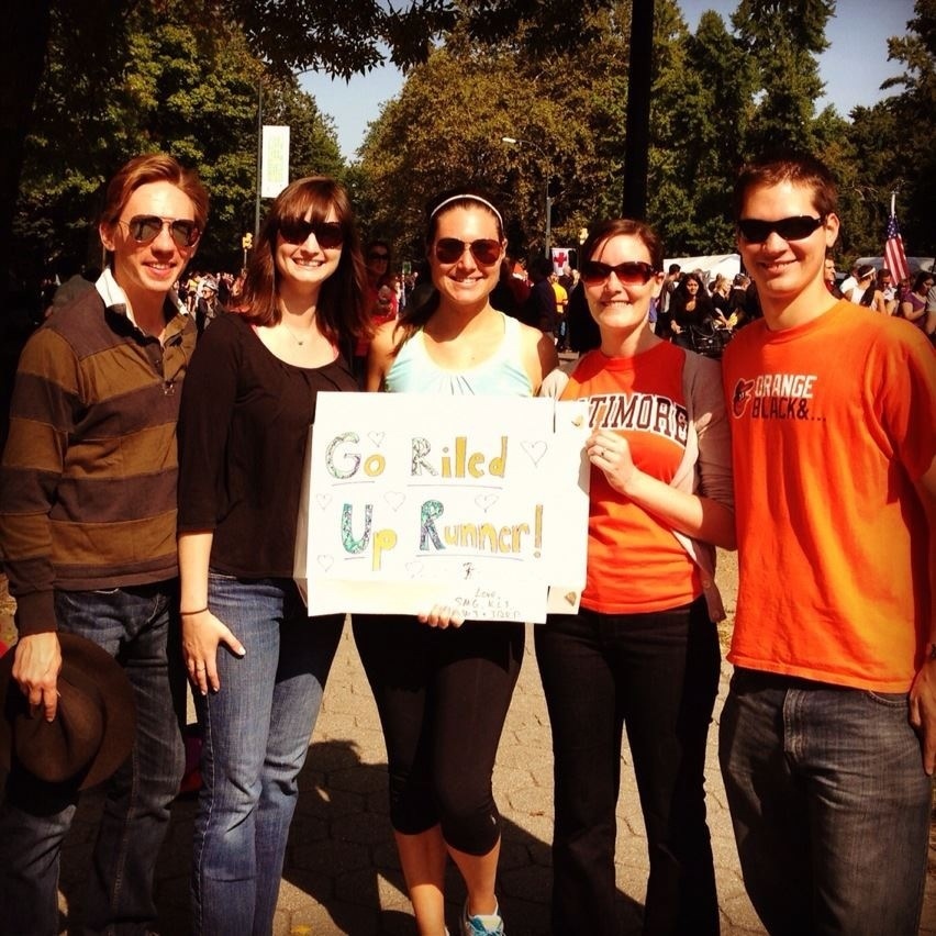 I’ve been fortunate to have support in the form of spectators at a number of my races, but none more so than at the Marine Corps Marathon in October. I knew my father, brother and a handful of cousins were planning to stake out spots somewhere between miles 16 and 18, and as a result, that stretch flew by as I scanned the crowd for their faces. I finally spotted them in front of the National Gallery – and again when they sprinted across the mall to catch me on the south side of the loop – but for all the excitement they instilled in me, what did they get? A 90-minute commute to Washington, three hours under chilly October cloud cover and thirty seconds of my sweaty face. And only I walked away with a medal. For all the encouragement and patience and support they offer us, spectators clearly get the short end of the stick.