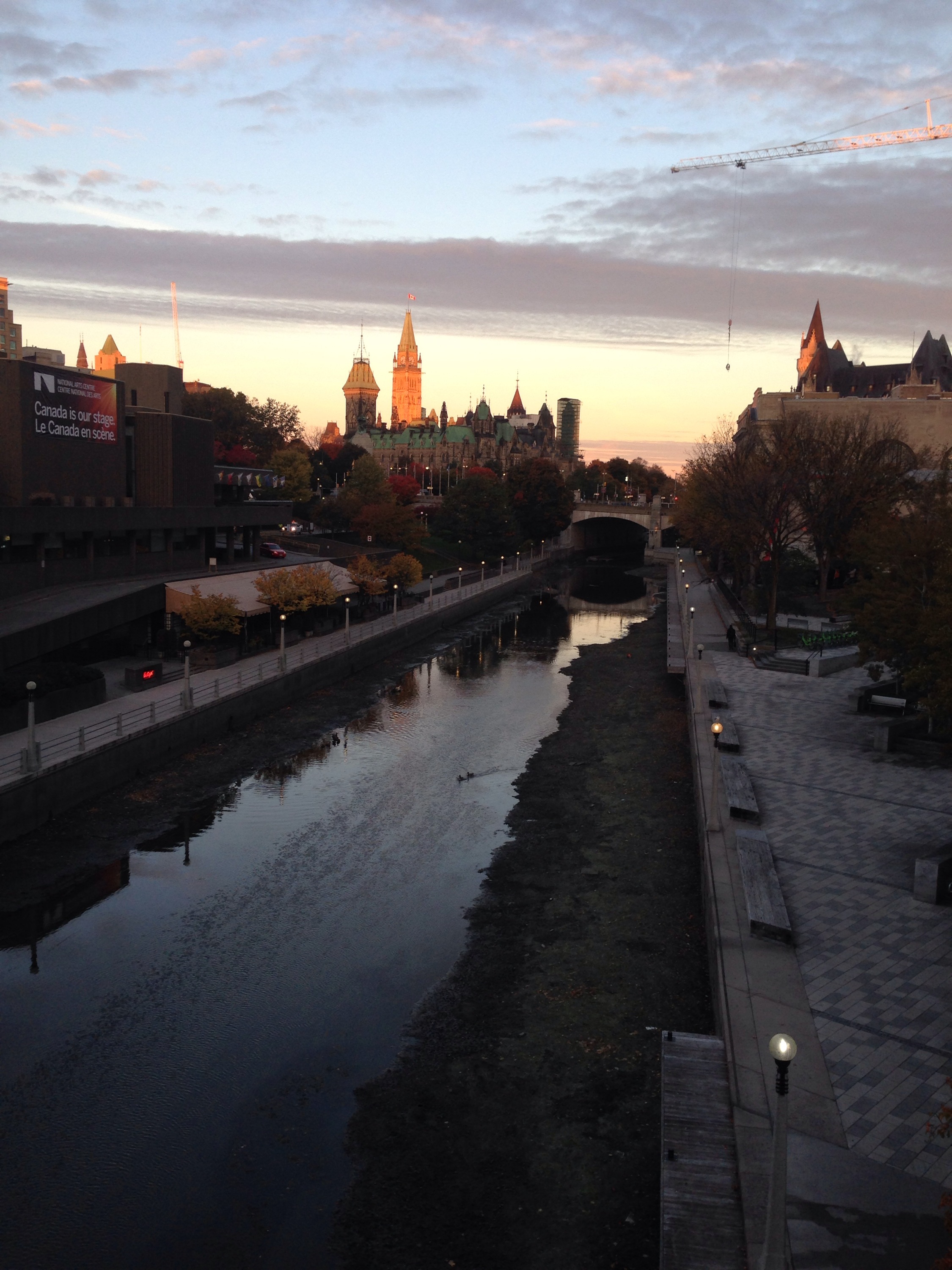 - Fair: By fair here, I really mean gorgeous, but “The Two Fs and one G” of running routes doesn’t really have the same ring. And gorgeous Ottawa was. Old architecture, picturesque bridges, clean sidewalks and ample nature were the mainstays of my canalside run last night. Don’t get me wrong – Central Park is beautiful in places, especially when the cherry trees bloom in April and the leaves turn colors in fall. But I’ve run that loop hundreds of times this year, while this Ottawa landscape was something new altogether. For this mentally fatigued runner in the final weeks of marathon training, that change of scenery was just what the doctor ordered.