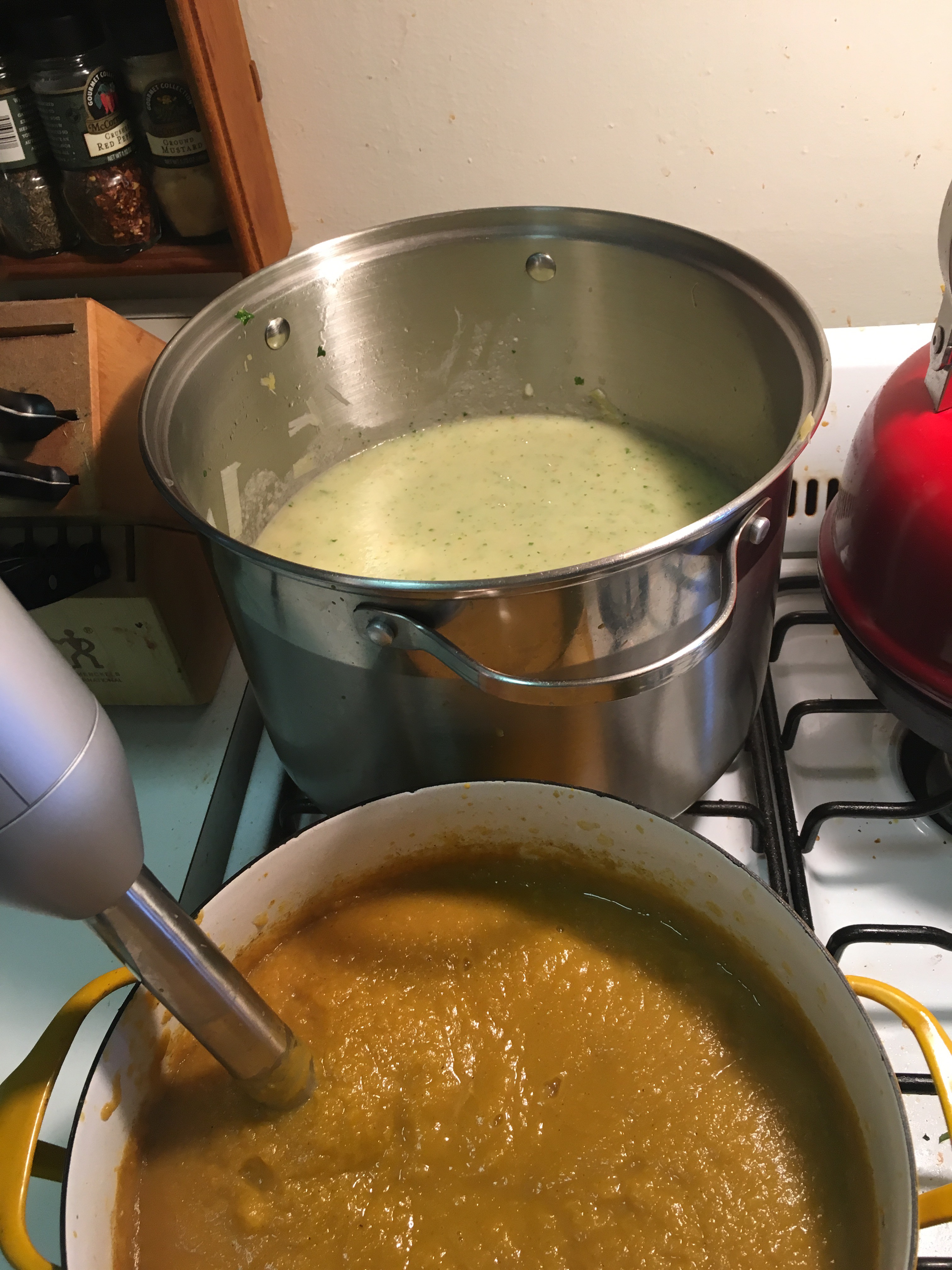 • I prepped. The trick to sticking to a plan like this is having ready-made food on hand. I prepared this week by making two giant batches of soup: butternut squash and parsnip leek. I froze them in muffin tins and have partitioned them out for easy, veggie-filled lunches on the go. Success.