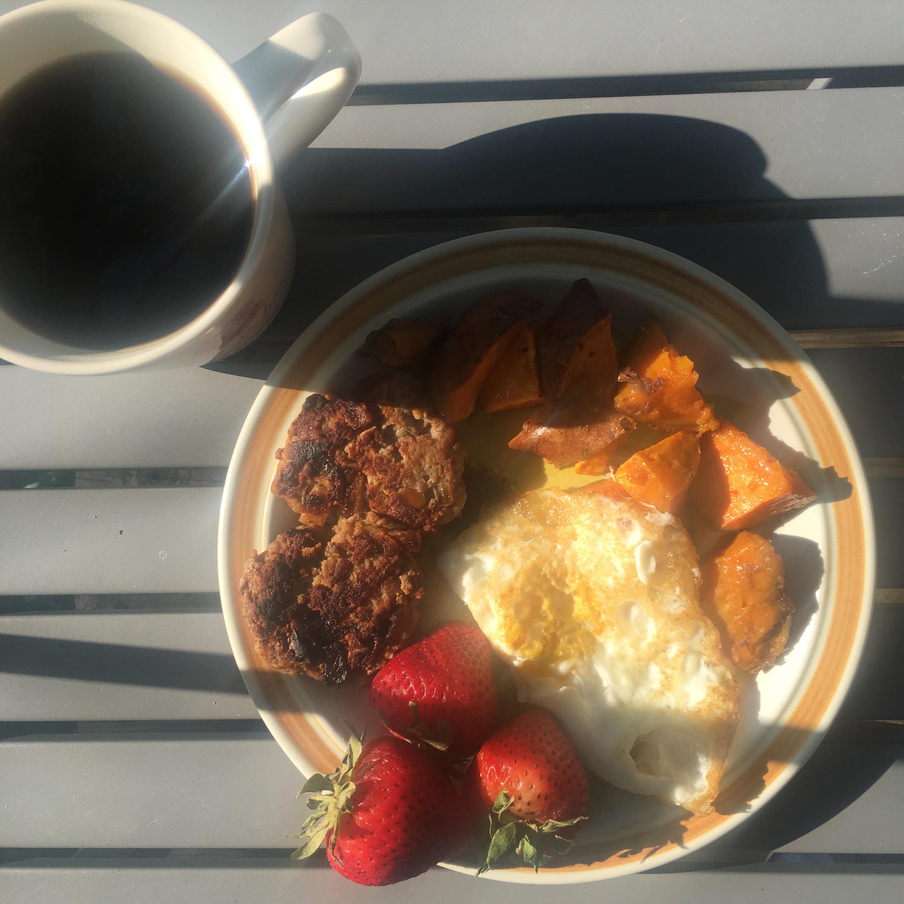 And the truth is, it wasn’t — at first. Instead of starting my restrictions on a workday, I began during a weekend visit to my sister instead, and I don’t think it hampered our lifestyle one bit (though the local ice cream salesman may think differently). I hit up the farmers market, cooked us delicious meals — meatballs, roasted sweet potatoes, breakfast sausage, a whole chicken — and even enjoyed a steak out at a restaurant without asking SO many questions on preparation that I sounded like Meg Ryan ordering pie a la mode. My meals were filling and delicious, and I didn’t get any of the pounding headaches other eaters leaving their carbs behind tend to report. Life was good.