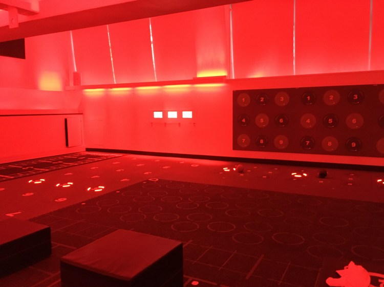But other exercises weren’t your regular run-of-the-mill gymnasium stuff. Two of the exercises involved bounding from one light-up floor panel to another, which would trigger a sensor and activate the next panel, keeping us on our toes and making it feel like we were in a real-live video game.