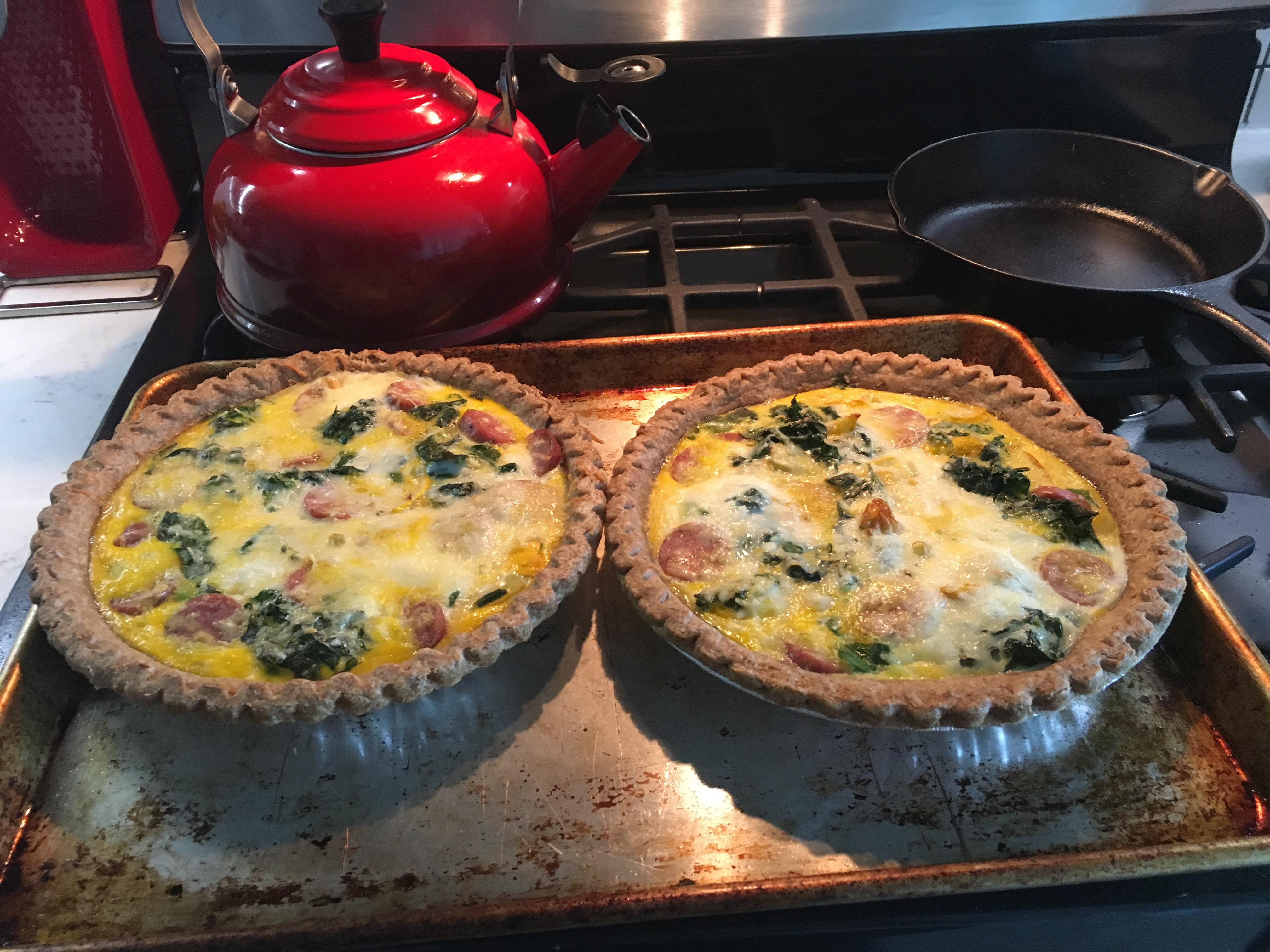 - Master some easy go-to dishes. It’s good to have a few recipes up your sleeve that can use multiple veggies at once. Bonus points if you can make it ahead and freeze it, so you have it for week two. For some people, that go-to dish is a hearty soup or a bisquick pie. For me, it’s quiche. I’ve already eaten most of one, and a second is cooling in my icebox as we speak.
