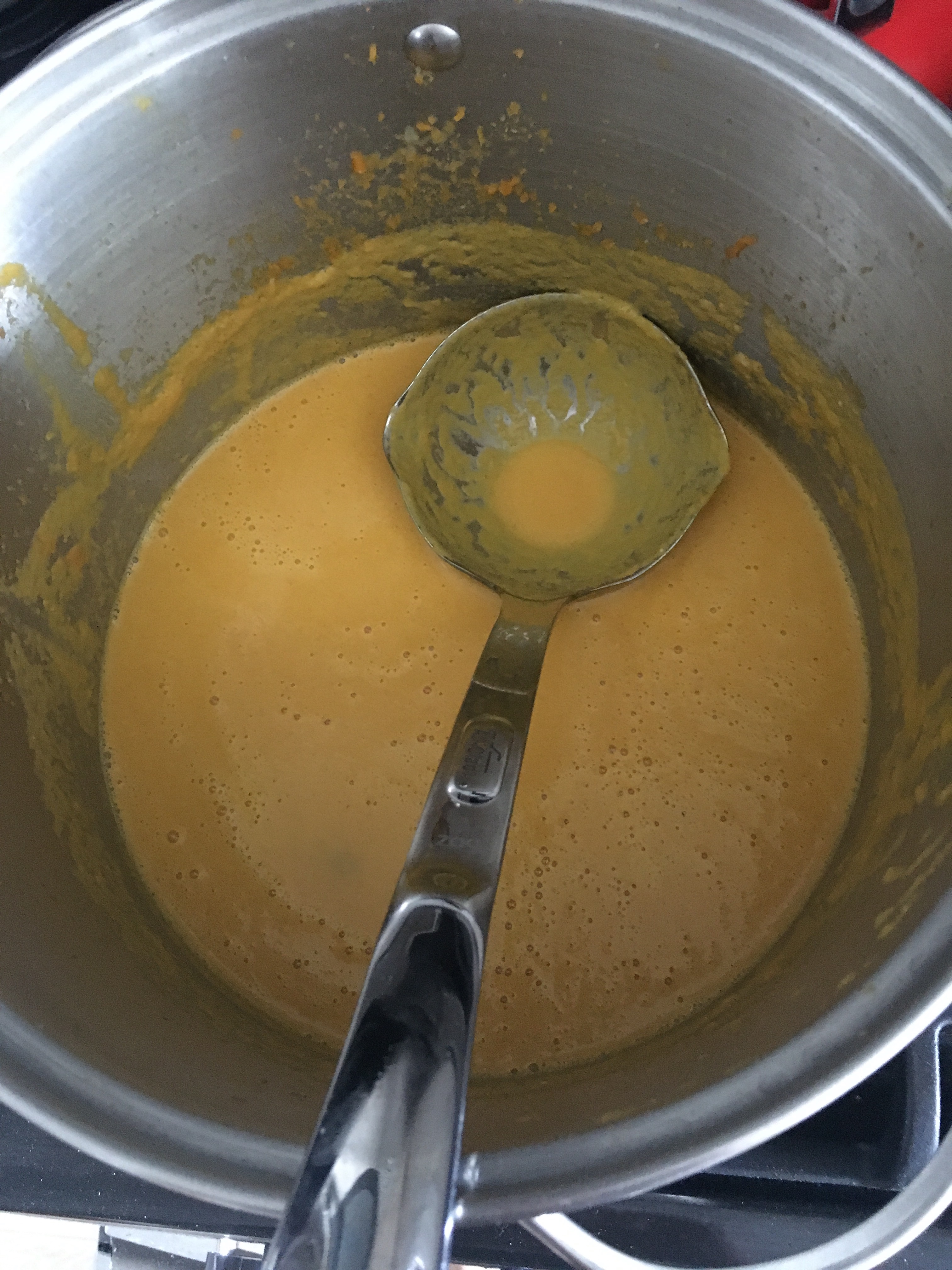 Then I puréed them into soup, following this recipe but adding a whole can of coconut milk and significantly more hot sauce. I also used unsalted almond butter instead of peanut butter, which may have been a big mistake considering how much I had to season it after. Still, turned out pretty decent.