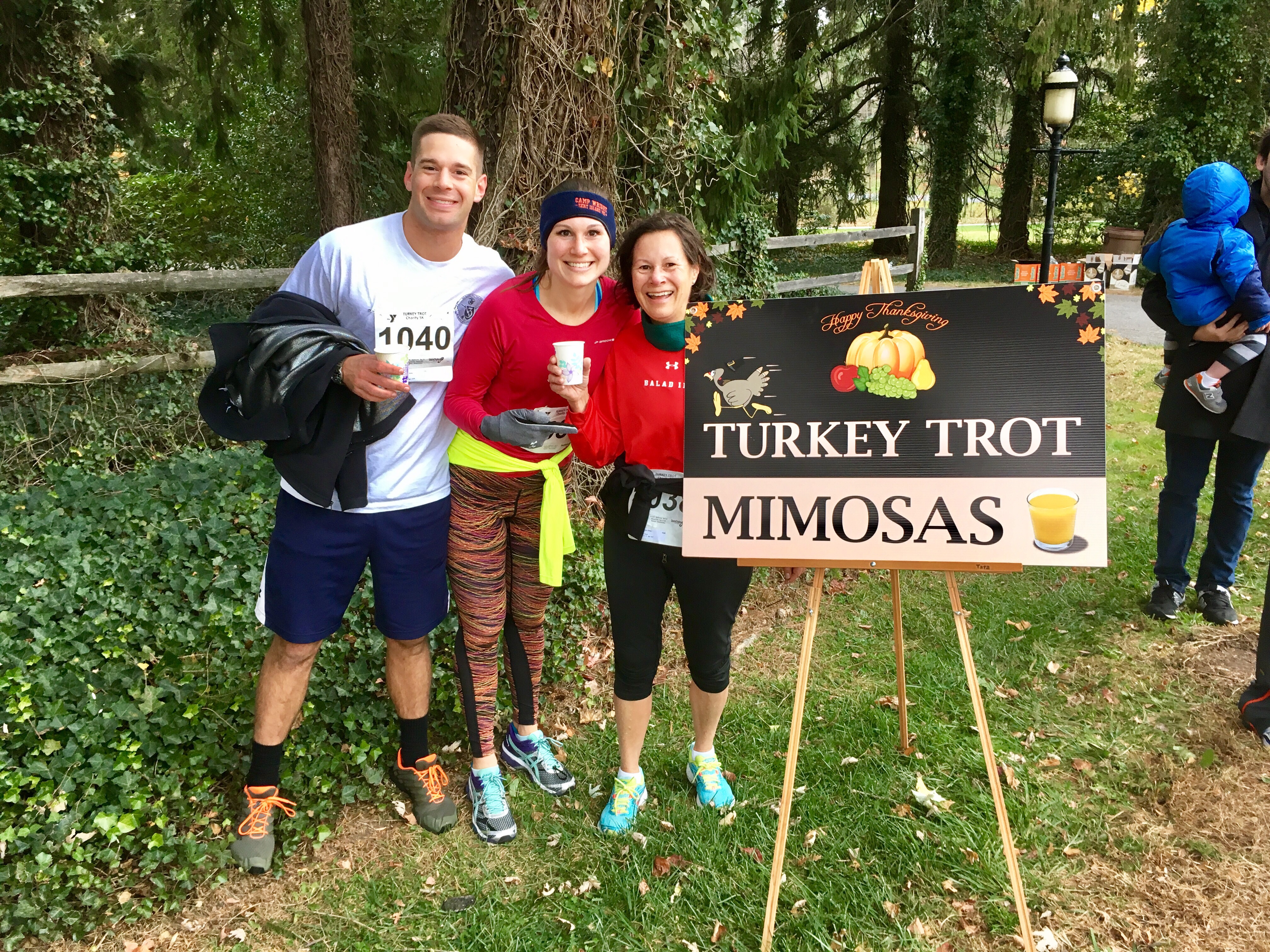 In fact, I even got to put that newly minted lesson to good use at this morning’s local turkey trot. The old “gotta have it all” Anne would have gone out sprinting in an effort to score a new PR, but the new me knew I couldn’t vie for a medal AND spend some quality time on Thanksgiving morning with my mother and brother. So even though I started off strong at a 7:45 pace, when I came upon my friends handing out turkey-day mimosas at mile 2, I did the once unthinkable: I stopped, I hugged everyone, and I waited for my family to round the corner so we could finish the race together.