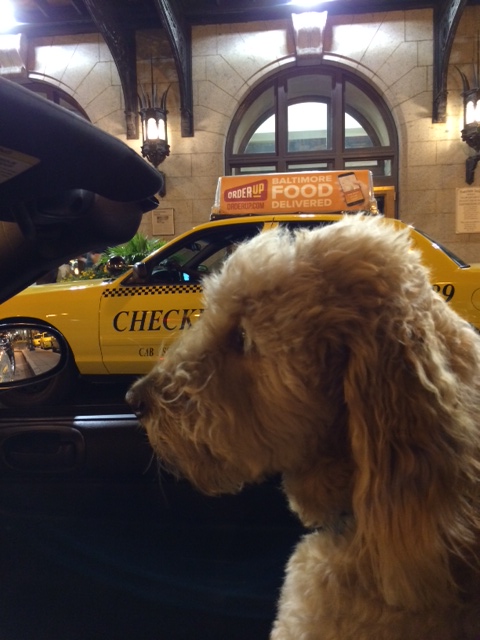 I’ve recently learned I’m not supposed to post photos of inside my office building, so here’s Keira waiting for a cab. (Flights: down 2, up 2, down 2, up 2, until I’m full, which is never.)