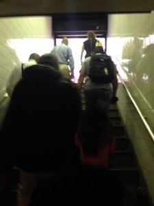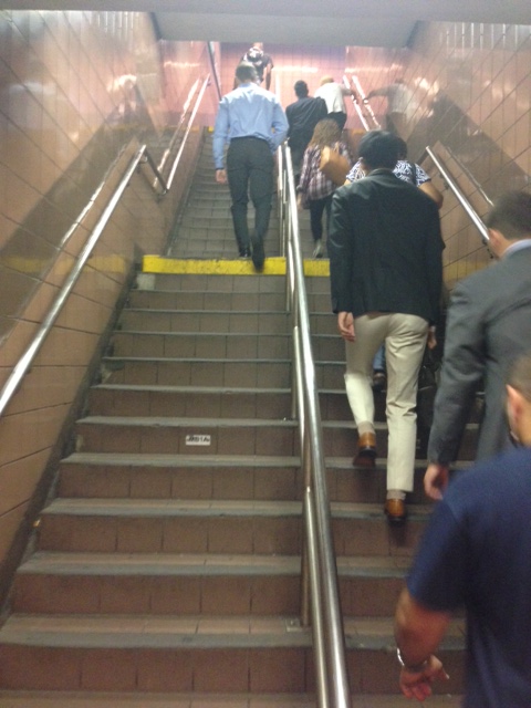 7:30 a.m. At departing subway station, downstairs to the express train.