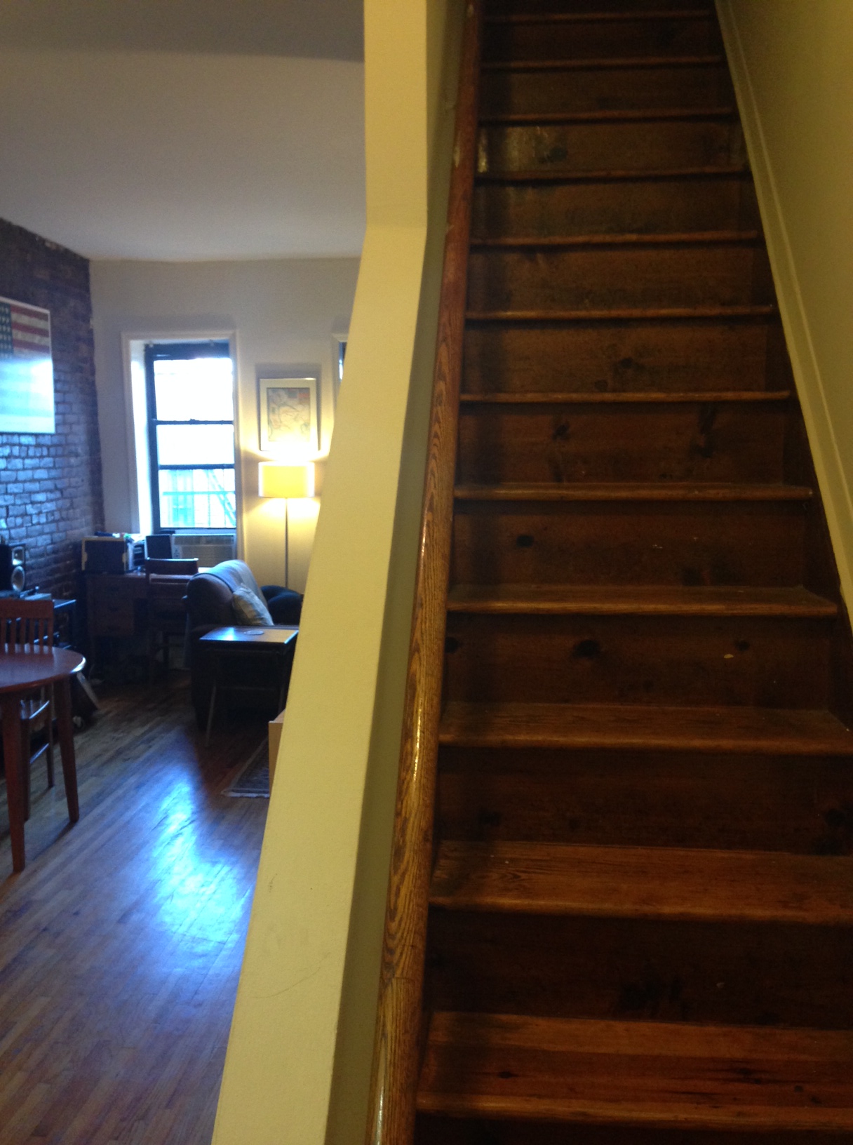 6 a.m. At the sound of my alarm, walk downstairs from our upstairs bedroom to the apartment’s main floor.